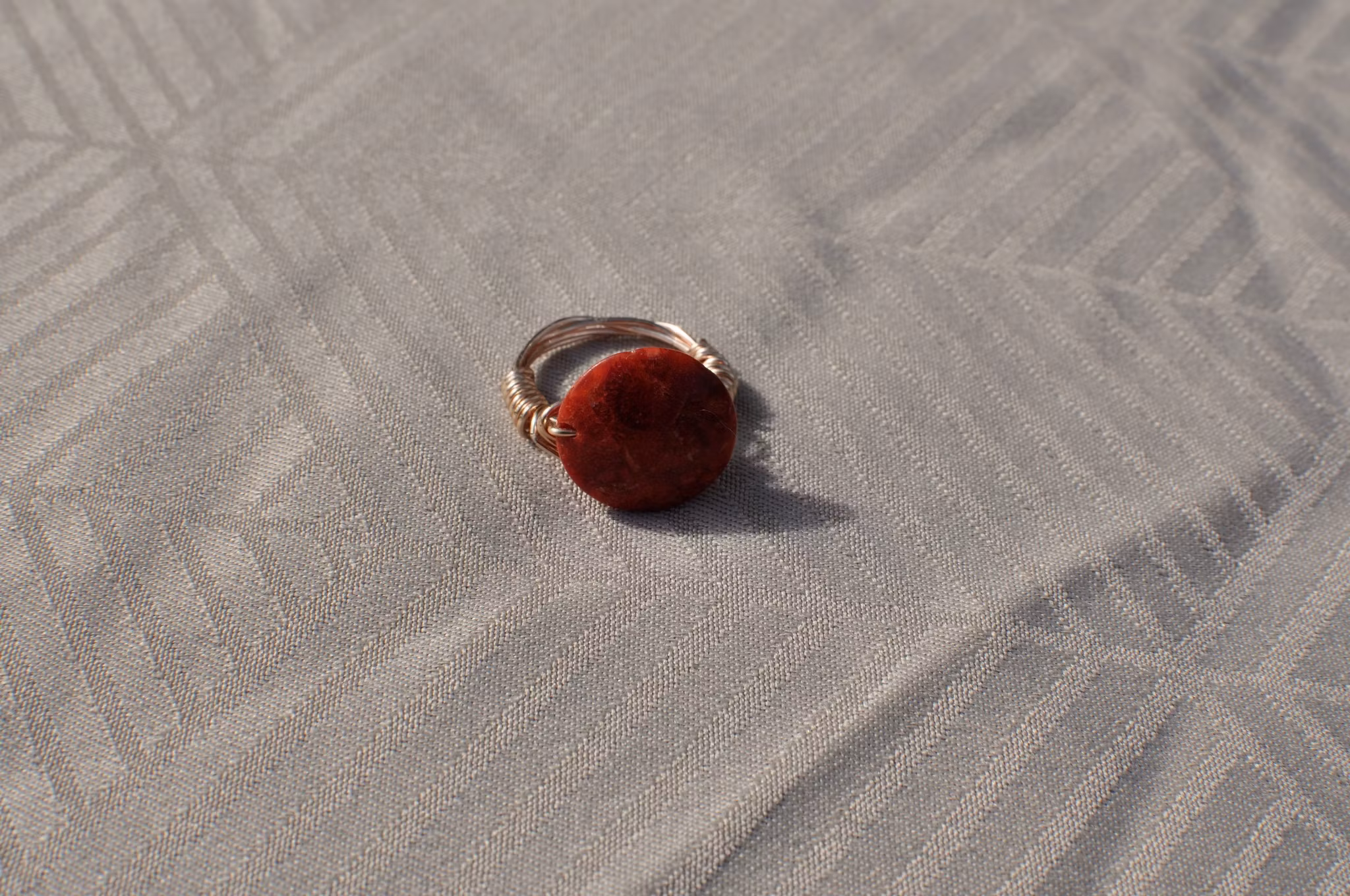 Håndlaget Ring med Rund Rød Jaspis